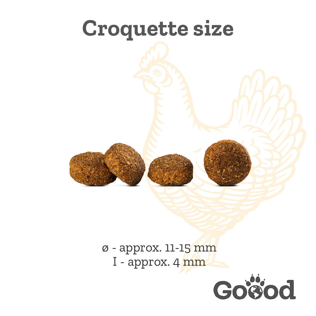 - 73 % original meat ratio (1 kg dry food contains 730 g chicken meat)