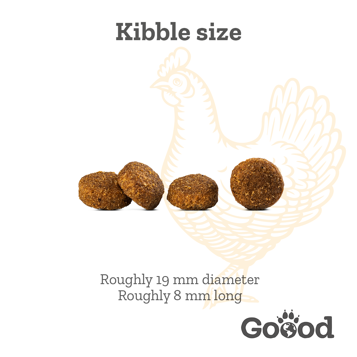- 73 % original meat ratio (1 kg dry food contains 730 g chicken meat)