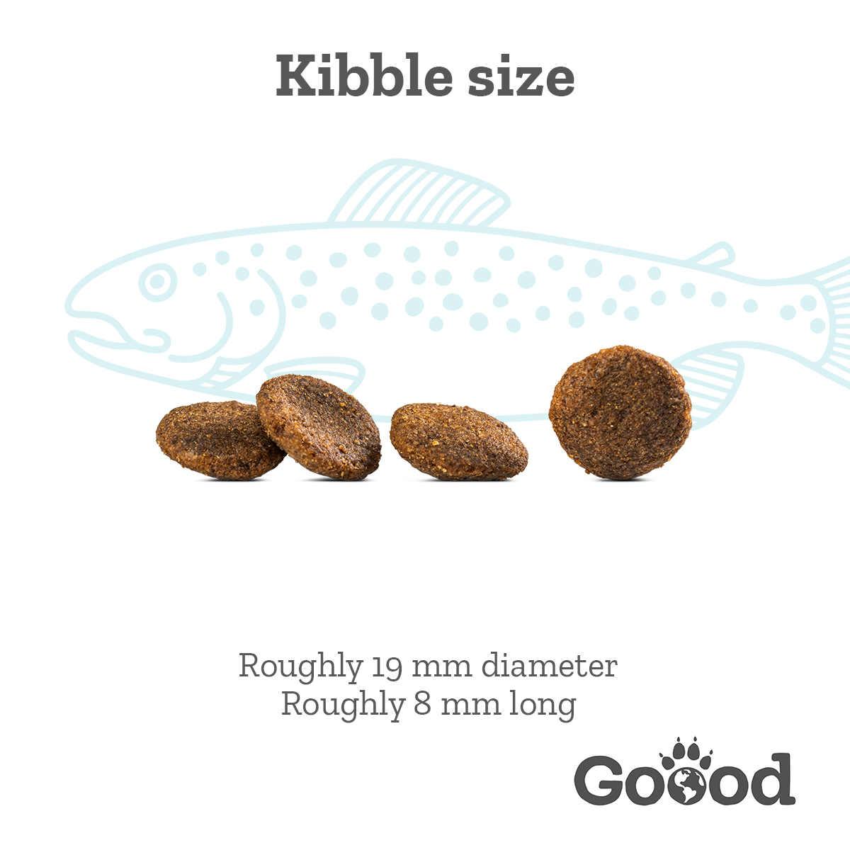 Highly digestible dog food with sustainable trout for mid-sized and large dogs
